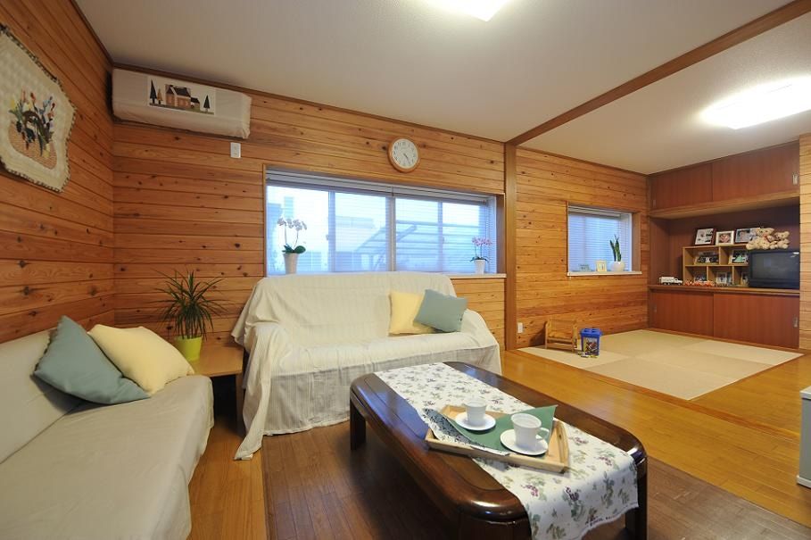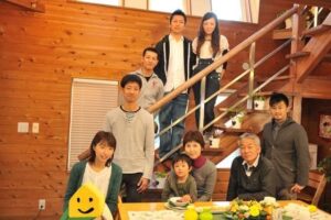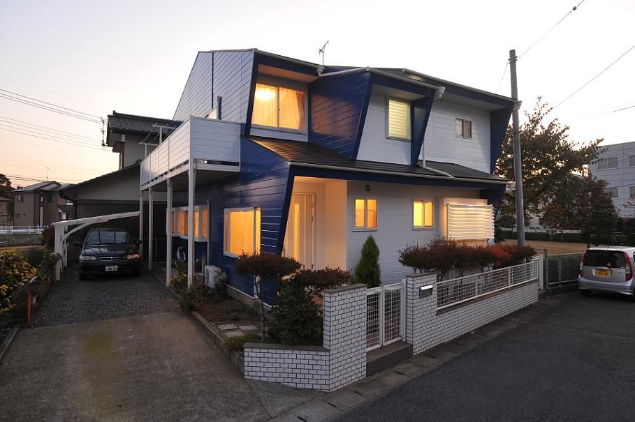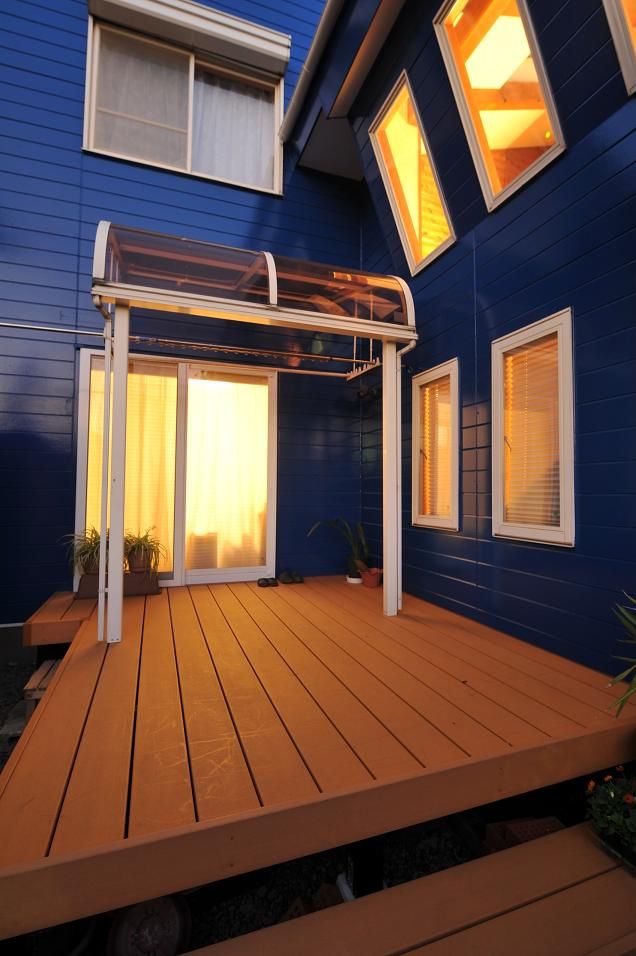 外壁もマリンブルーに塗り替え、テラスも付けてイメージチェンジ。仲良し家族が集う素敵な家の中心には、3人の子供からプレゼントされたソファが置かれていた。