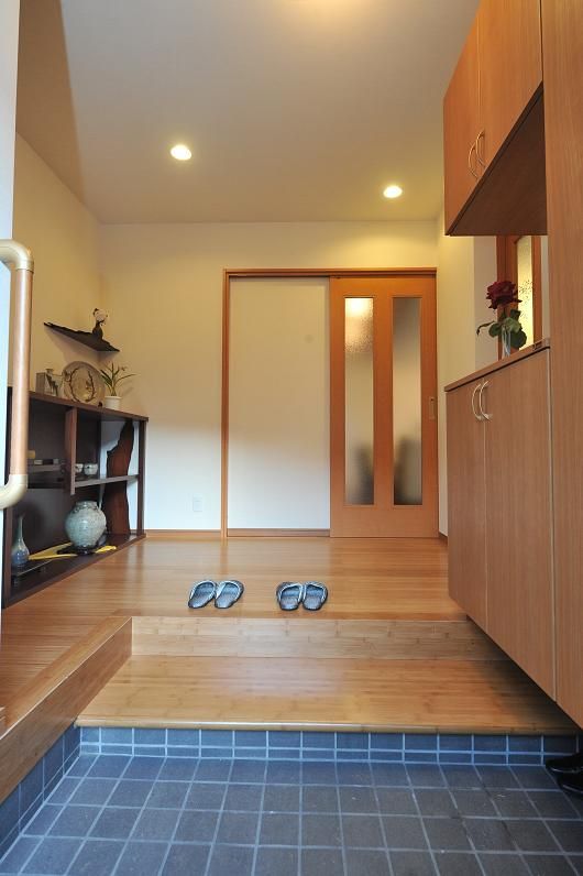 ご夫婦のお気に入りは、“息吹の家”と同じ竹の床。もともと竹に憧れていたというご主人。想い出が詰まった欄間の一部を玄関の飾り棚に活かすなど予想以上のできに、最初乗り気でなかったご主人も満足そう。老後を安全快適に過ごす為に、バリアフリー、オール電化、断熱に重点を置いたリフォーム。無駄なスペースを収納として有効活用。台所の棚を隠す戸は天井から床まであり、まるでアクセントのある壁のように見える。「機能的でおしゃれ」と奥様もご満悦。捨てようと思っていたテーブルも、足を低くして応接テーブルに変身。