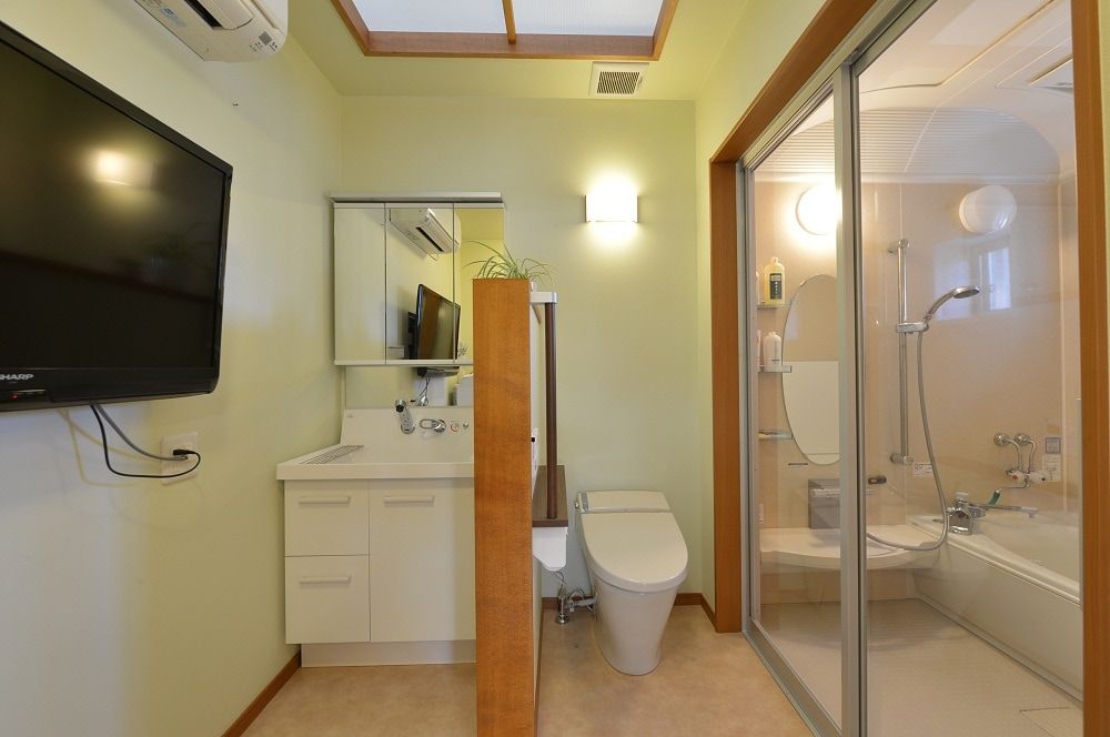 生活リズムが違うことから、風呂・トイレ・キッチンは別。メインダイニングは全員が集まれるように広く。風呂からテレビが見たい。土間の段差、動線の悪さ、暗さ寒さを解消したい。書斎スペースが欲しい。子ども部屋を増やしたい。等々、家族の希望はたくさんあったが、リフォームでは狭いので全部は叶えられないとあきらめていた。ところが、たまたま5年前からトチペの『家族の絆物語』で知っていたドクターリフォームサンセイに相談すると、さっそく4種類の間取り図を作ってくれた。それを見て「みんなの希望が、全部入るんだ!」と驚いたそうだ。「これなら、大谷石を壊さないでリフォームでいける」と依頼することに。